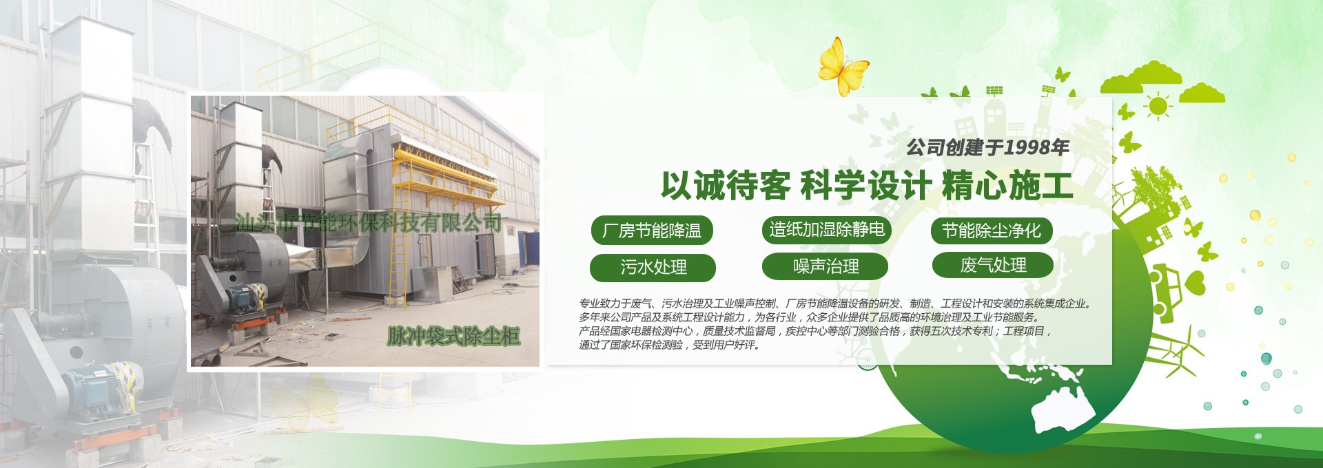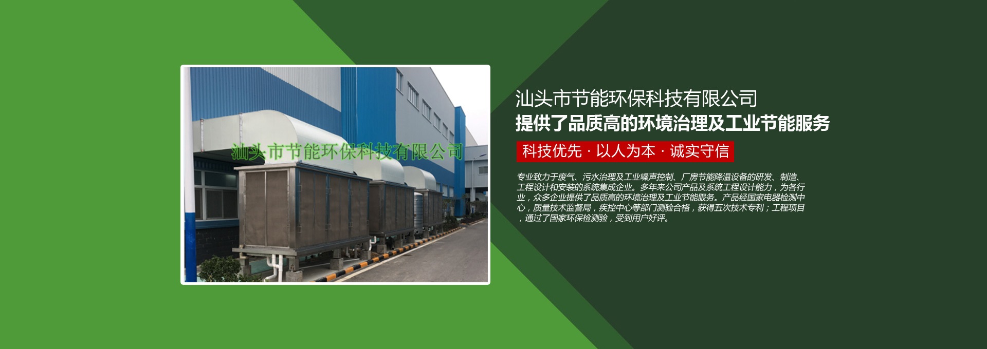 汕頭市節(jié)能環(huán)保科技有限公司創(chuàng)建于1998年,是一家專業(yè)致力于廢氣、污水、粉塵、噪聲治理,廠房節(jié)能降溫設備的研發(fā)、制造、工程設計和安裝的系統集成企業(yè)。多年來公司產品及系統工程設計能力,為各行業(yè),眾多企業(yè)提供了品質高的環(huán)境治理及工業(yè)節(jié)能服務。產品經國家電器檢測中心,質量技術監(jiān)督局,疾控中心等部門測驗合格,獲得五次技術專利;工程項目通過了國家環(huán)保檢驗檢測,受到用戶好評。